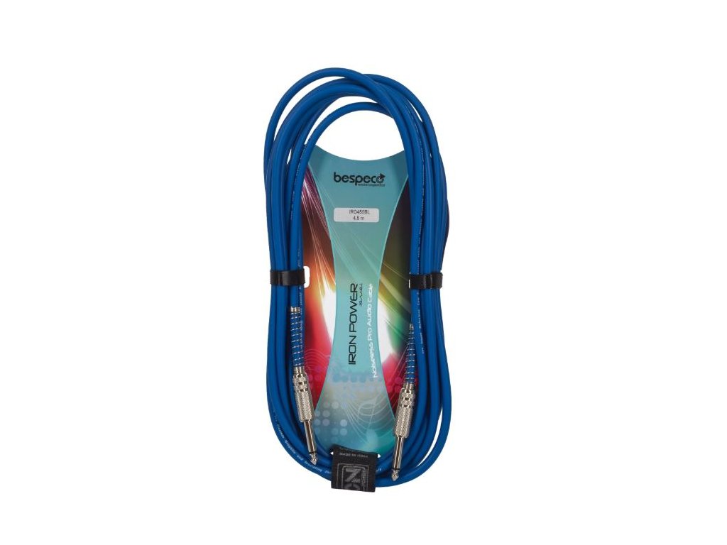Tento nástrojový kabel ze série Bespeco Iron Extreme disponuje vodičem z 98% bezkyslíkaté mědi (OFC) a vnitřním polovodivým PVC pláštěm, díky němuž neprodukuje žádný šum. Ke kvalitě zvuku přispívá i spirálové stínění na více jak 92 procentech vodiče nebo pozlacené jacky s kovovým tělem. Samozřejmostí je odolné a zároveň flexibilní opláštění z PVC a vulkanizovaného silikonu.