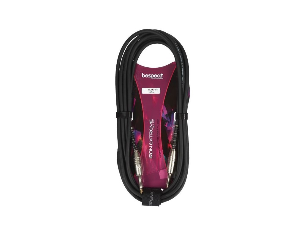 Tento nástrojový kabel ze série Bespeco Iron Extreme disponuje vodičem z 98% bezkyslíkaté mědi (OFC) a vnitřním polovodivým PVC pláštěm, díky němuž neprodukuje žádný šum. Ke kvalitě zvuku přispívá i spirálové stínění na více jak 92 procentech vodiče nebo pozlacené jacky s kovovým tělem. Samozřejmostí je odolné a zároveň flexibilní opláštění z PVC a vulkanizovaného silikonu.