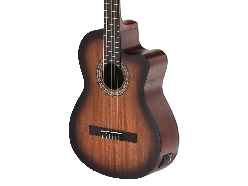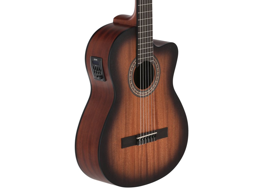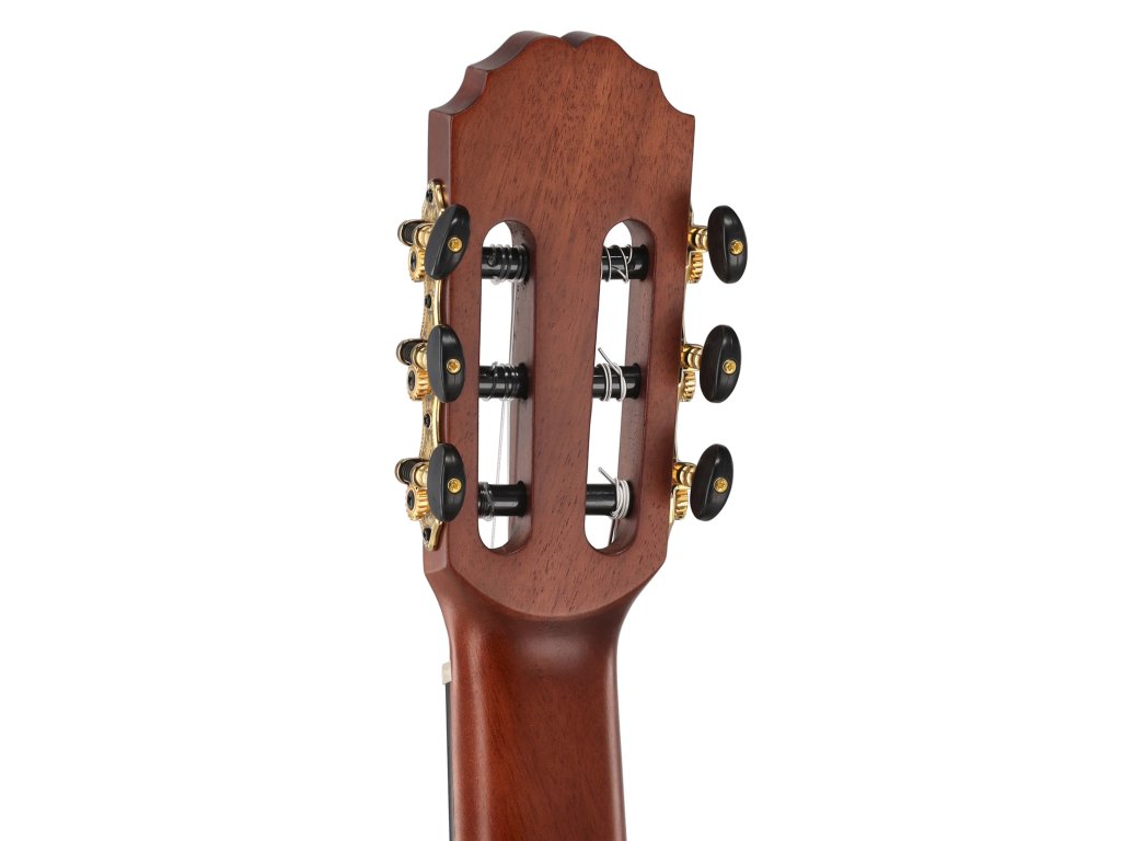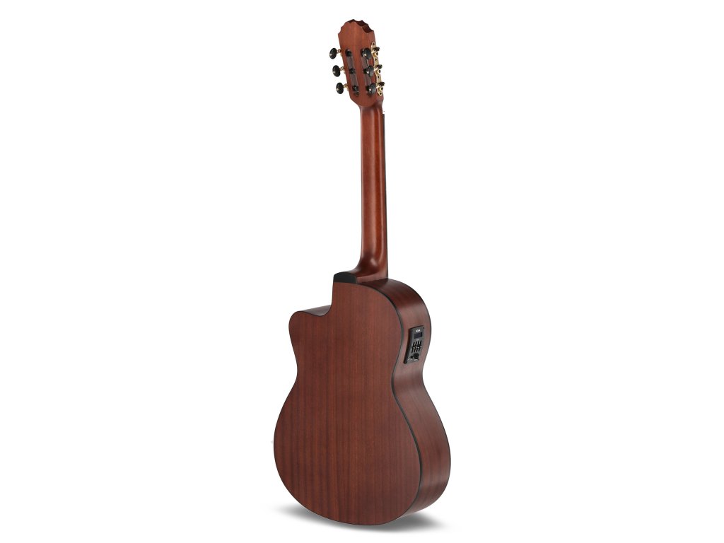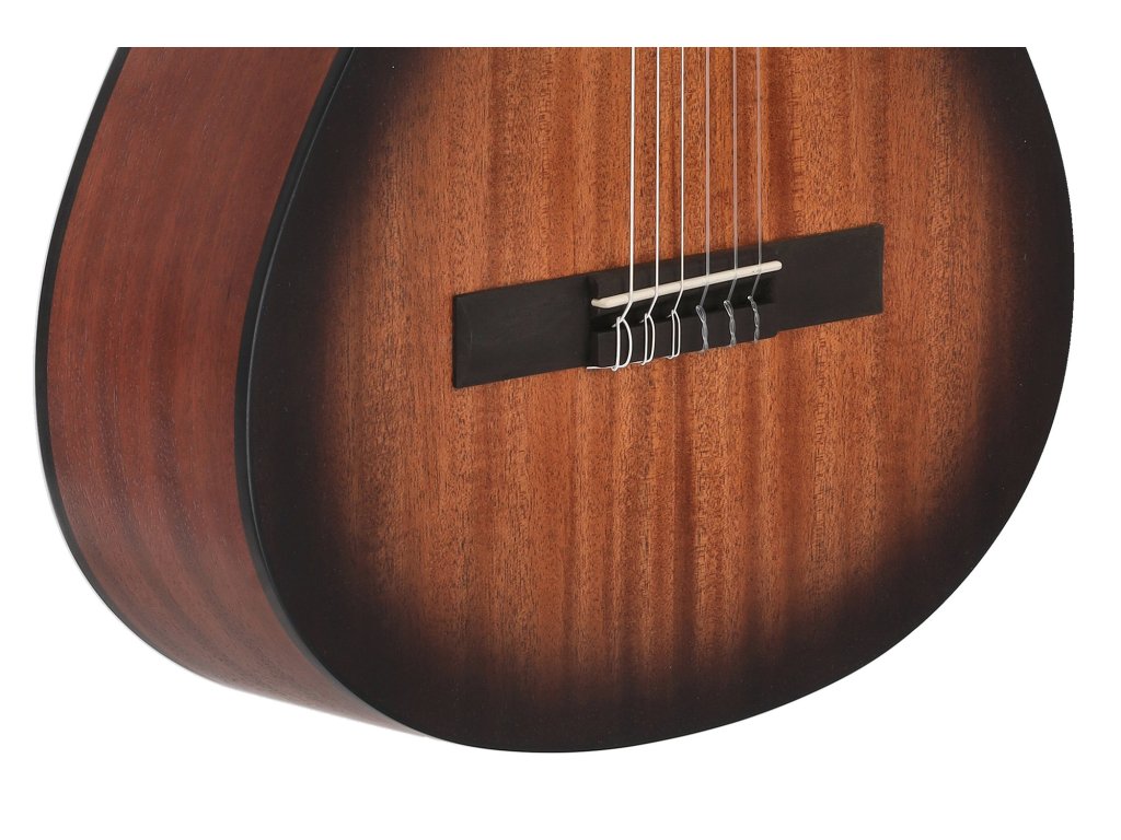Vrchní deska je vyrobena z pečlivě vybraného smrku nebo cedru, které zajišťují teplý, bohatý a plně rezonující zvuk typický pro klasické kytary. Boky a zadní část jsou z masivního mahagonu či palisandru, což přispívá k hlubším tónům a stabilitě nástroje.