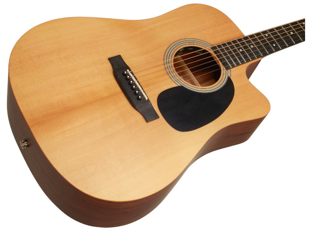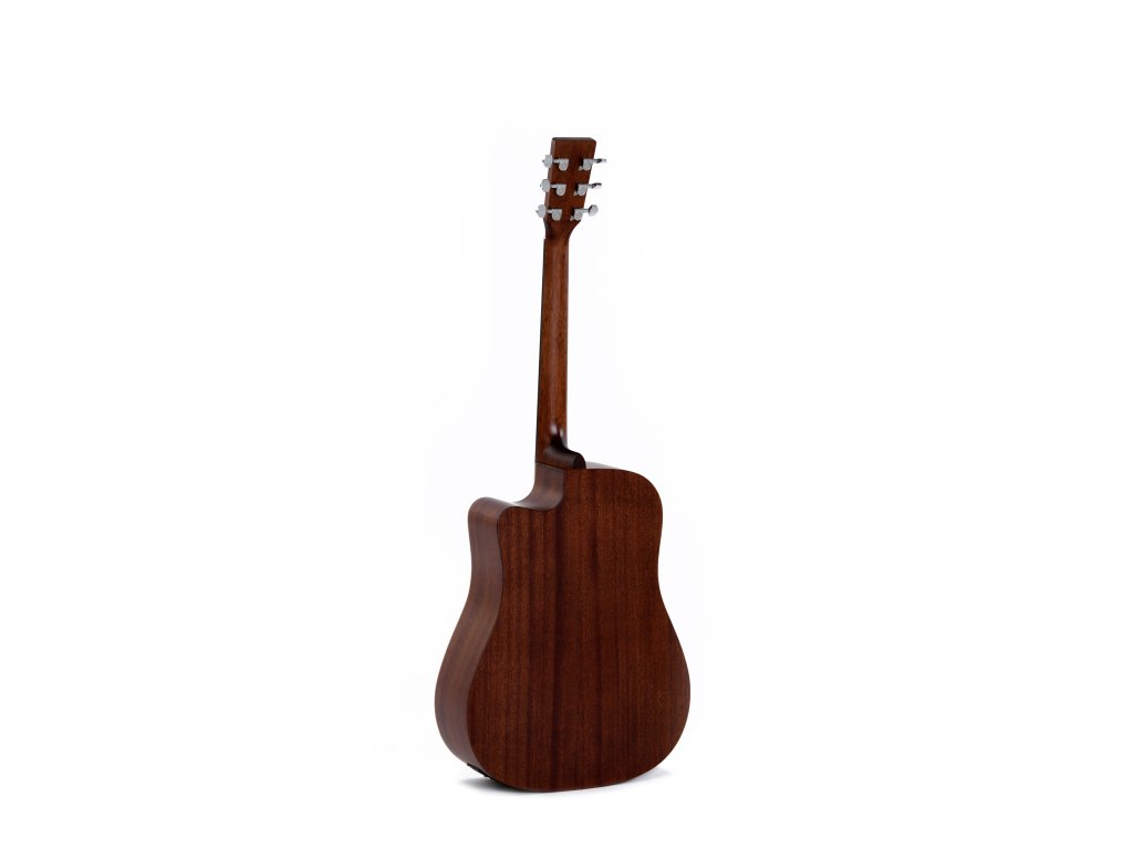 Přední deska kytary je zhotovena z masivu smrku Sitka, zadní deska a luby jsou vyrobeny z vrstveného mahagonu. Díky osvědčené kombinaci smrku a mahagonu a vyváženému poměru zvukové průraznosti a vřelosti představuje Sigma DMC-STE-WF univerzálně dobrou volbu pro řadu hudebních stylů.